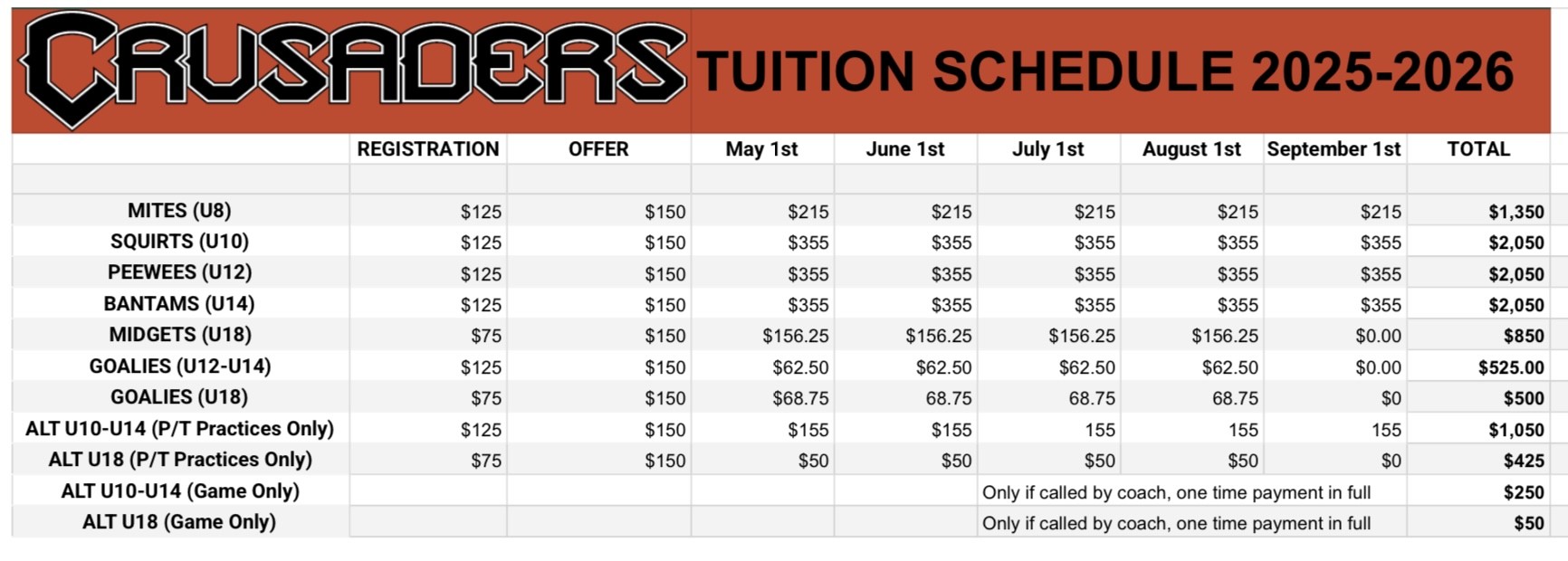Tuition Schedule